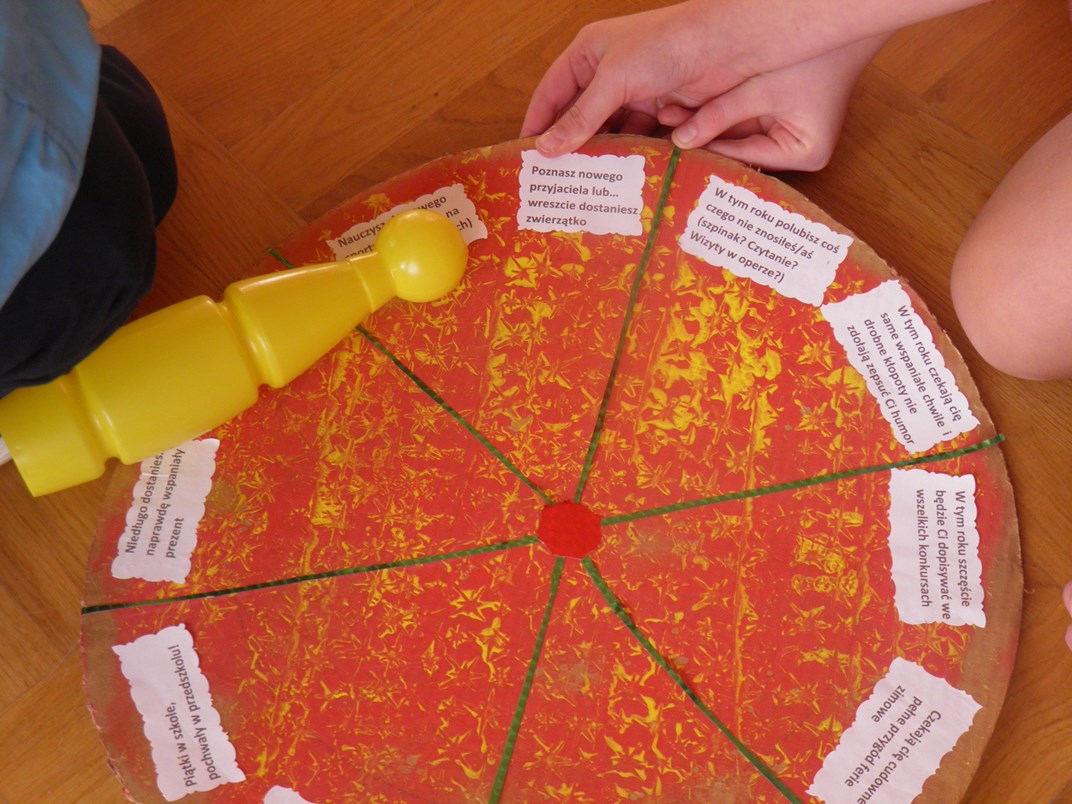 W trakcie zabawy przeprowadzono losowanie kolorowych karteczek z kapelusza. Każdy mógł wybrać swój kolor, który przypadł mu do gustu, po losowaniu uczeń przeprowadzający zabawę odczytał jakie wróżby kryją się pod danym kolorem. Kolejny konkurs związany był z kręceniem kręglem na specjalnie przygotowanej tarczy z wróżbami, inne zabawy dotyczyły przekłuwania serc z imionami swojej przyszłej wybranki lub swojego przyszłego wybranka.