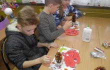 Uczniowie należący do Szkolnego Koła Caritas pod kierownictwem opiekun SKC p. Teresy Baran wykonali „świąteczne choinki”. W przygotowanych pojemnikach umieszczono szyszki. Na końcach szyszek uczniowie przyklejali kolorowe pompony. W efekcie szyszki wyglądały jak małe choinki na których zawieszono kolorowe lampki. Po wykonaniu choinek uczniowie odwiedzili emerytowanych nauczycieli i pracowników szkoły, aby wręczyć im przygotowane upominki, jednocześnie składając życzenia bożonarodzeniowe. Ozdoby wykonywane przez członków SKC zostały przekazane także pani Dyrektor oraz Radzie Pedagogicznej.