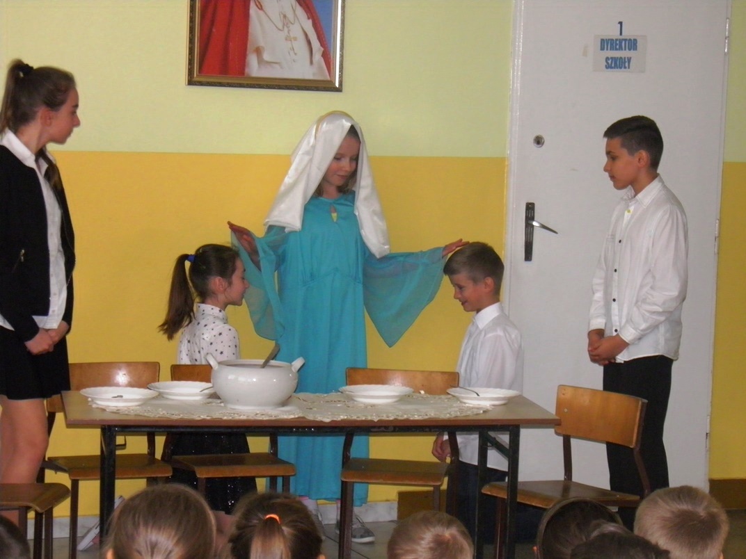 Program artystyczny z okazji dwunastej rocznicy śmierci papieża Jana Pawła II przygotowali uczniowie klas IV – VI pod opieką księdza K. Bochnaka. Część artystyczna została zaprezentowana 5 kwietnia 2017 r. w trakcie długiej przerwy obiadowej. Przedstawiona przez uczniów historia opowiadała o rodzinie spożywającej obiad przy wspólnym stole. Posiłek co jakiś czas przerywany był przez przybyłych do domu niezapowiedzianych gości, którzy przynosili pocieszenie i radę rodzinie. Wśród odwiedzających pojawił się między innymi św. Maksymilian Maria Kolbe i św. Jan Paweł II. W ciągu każdego roku szkolnego jest wiele uroczystości humorystycznych czy też poważnych, ale tylko jedna tak wyjątkowa jak dzień poświęcony wydarzeniom z 2 kwietnia 2005 roku.