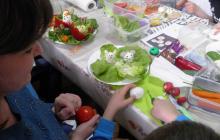Warsztaty Wielkanocne zostały przeprowadzone 6 kwietnia 2017 r. przez p. E. Miąskowską, p. T. Baran i p. K. Ostrowską – wychowawców klas I – III oraz oddziału przedszkolnego. Zajęcia miały dwojaki charakter ponieważ tematyką nawiązywały do tradycji i zwyczajów kulinarnych zbliżających się świąt Wielkanocnych, a zarazem kształtowały prawidłowe nawyki żywieniowe wśród najmłodszych uczniów, które są realizowane w ramach programu „Żółty talerz”. Na warsztaty zaproszono mamy uczniów, które owocnie wspierały poczynania swoich pociech. Uczniowie wraz z rodzicami przygotowywali świąteczne przekąski. Na talerzykach pojawiły się kompozycje przypominające myszki, zajączki, kurczaki i jeże. Wszystko to wykonano z ugotowanych jajek, których dopełnienie stanowiły warzywa tj. rzodkiewka, sałata, szczypiorek, marchewka, pomidory, papryka i ogórki.