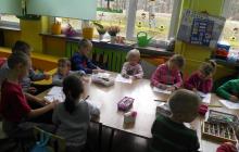 Dzieci dowiedziały się jak działa słuch, do czego jest nam potrzebny, jakie trudności mają osoby z wadą słuchu. Następnie zaprezentowane zostały kolorowanki aparatu i procesora dźwięku. Omówiono urządzenia oraz wyjaśniono jakie możliwości dają dzieciom z wadą słuchu. Na podsumowanie zajęć uczniowie mieli zaprojektować według własnych pomysłów protezy słuchowe. Zajęcia te przygotowała i poprowadziła Pani Katarzyna Szul.
