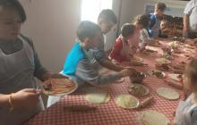 Kolejnym punktem wycieczki były warsztaty w pizzerii. Każdy uczestnik zajęć warsztatowych wykonywał pizzę. Uczniowie musieli zająć się przygotowaniem ciasta i ułożeniem składników na nim takich jak ser, oliwki czy szynka. Po tych czynnościach pizza została wypieczona w piecu, a mali kucharze zajęli się oceną efektów swojej pracy.