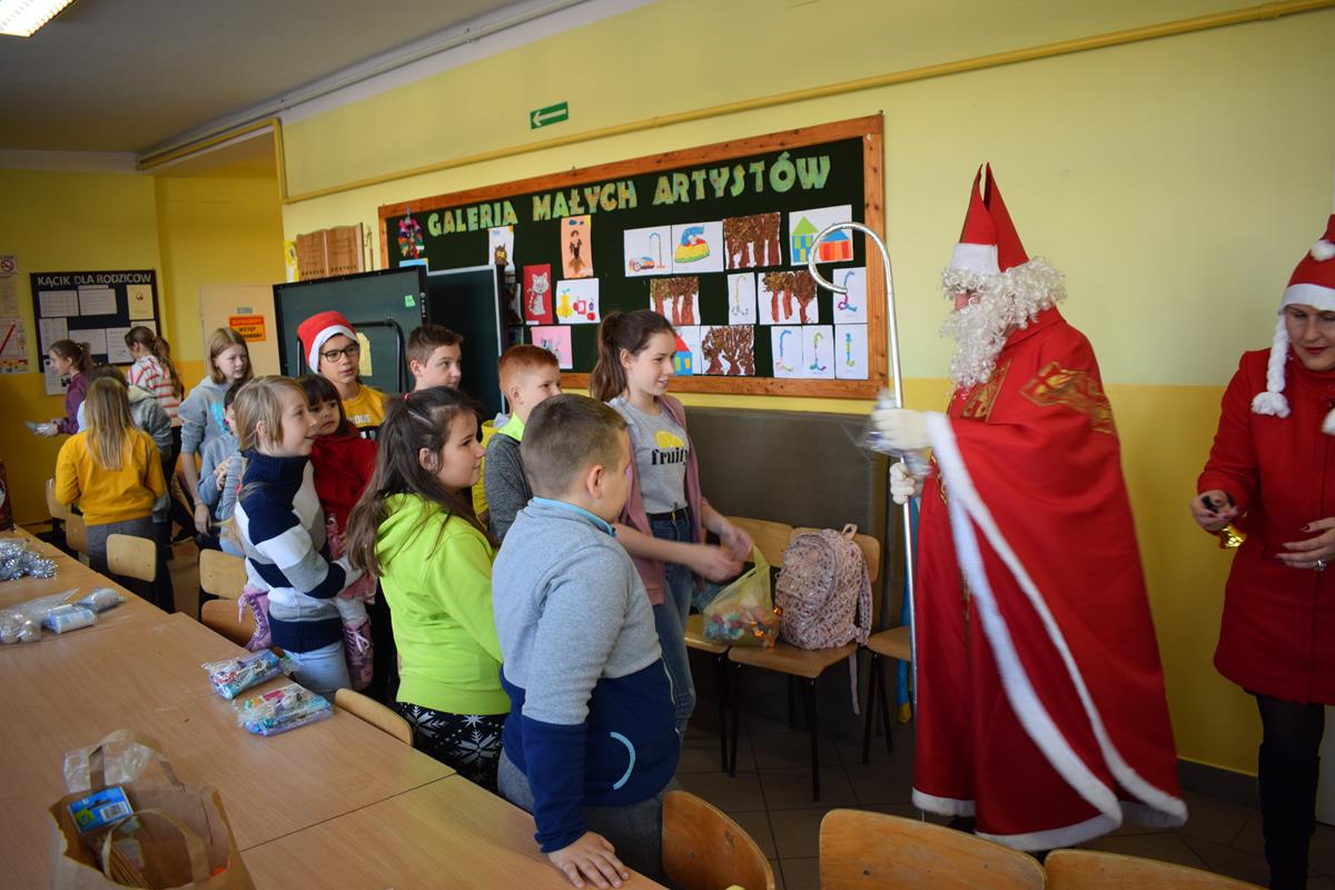 6 grudnia 2019r. szkołę odwiedził św. Mikołaj, który swą wizytę rozpoczął od odwiedzin przedszkolaków. Tak właściwie to maluchy zauważyły jako pierwsze naszego gościa, ponieważ ten przybył do nas od strony boiska szkolnego i to właśnie dzięki przedszkolakom Mikołaj dotarł do szkoły wraz z elfami i workiem prezentów oczywiście. Mikołaj oprócz upominków dostarczył wiele radości i uśmiechu zarówno młodszym dzieciom jak i starszym uczniom. Serdecznie dziękujemy sponsorowi, który wsparł św. Mikołaja.