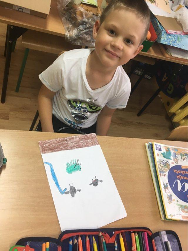Dużo radości sprawiło uczniom tworzenie na podstawie wysłuchanej bajki prac plastycznych.