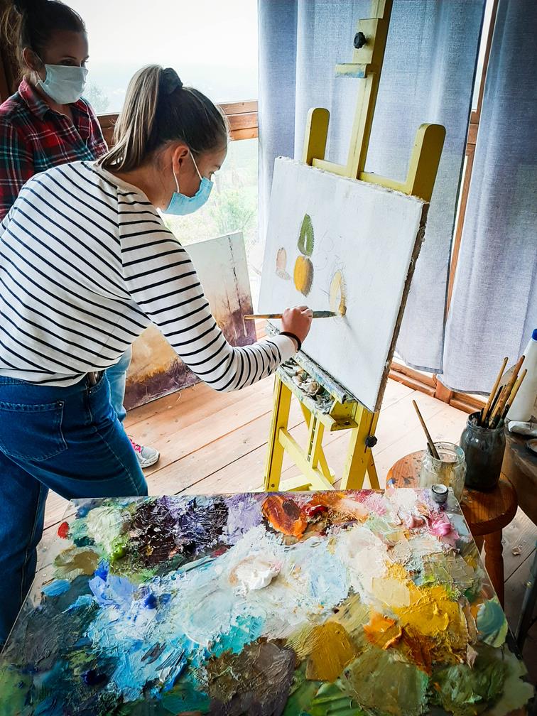 W trakcie pracy stanęli przez takimi zadaniami jak dobór odpowiednich barw i pędzli. Rozwijali również umiejętność operowania pędzlem na płótnie z wykorzystaniem sztalug, a co za tym idzie obcowali z prawdziwym warsztatem malarskim.