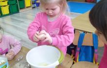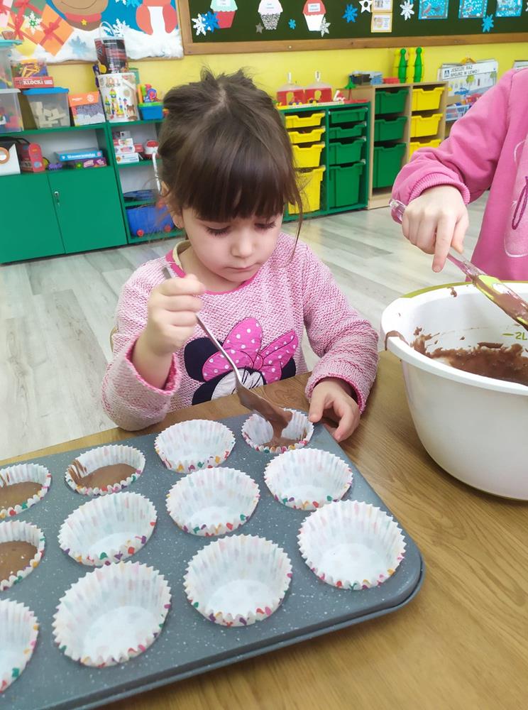 Z tej okazji zostały upieczone pyszne, czekoladowe babeczki, które przystrojone zostały kolorowymi serduszkami. Oprócz tego dzieci wykonały walentynkową pracę plastyczną, która urzekła efektem końcowym.