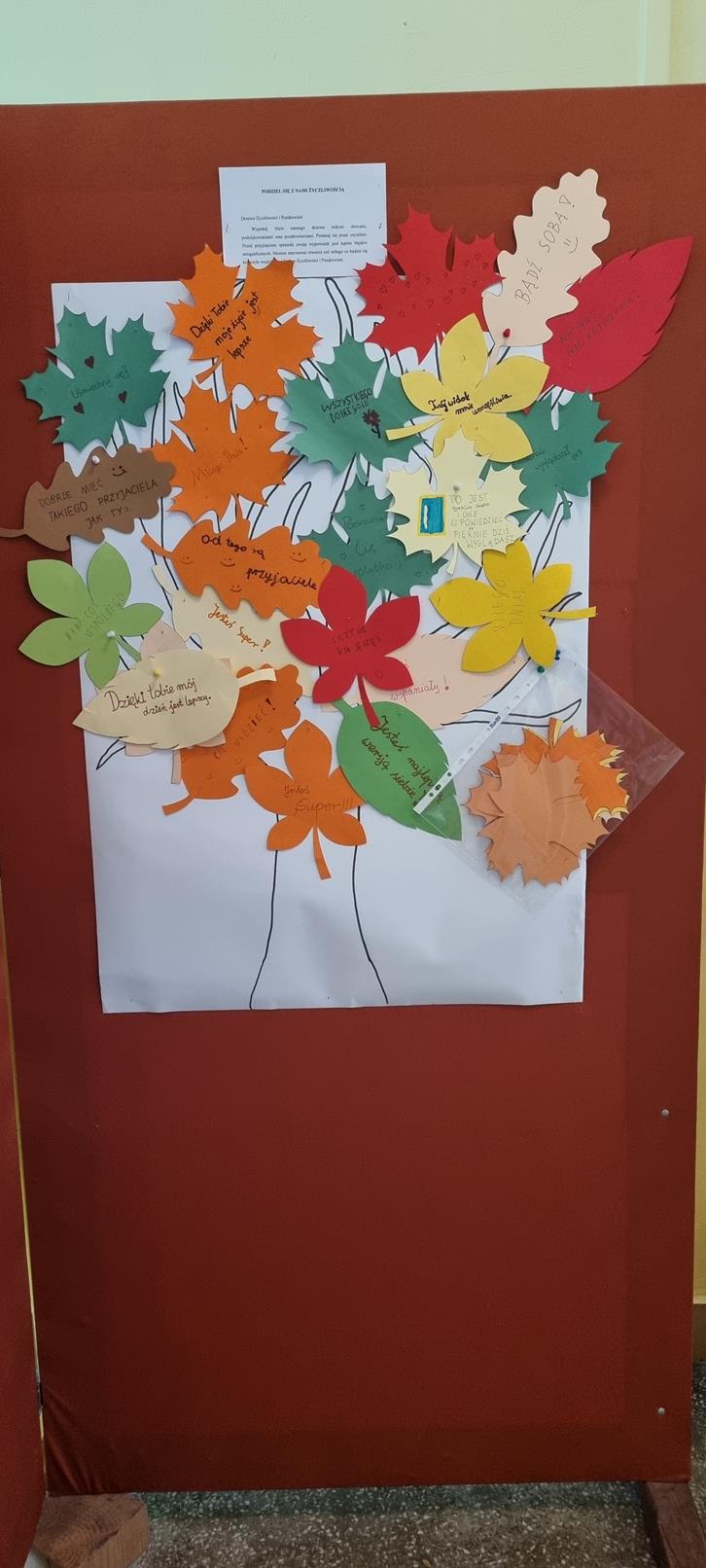 Przez cały tydzień uczniowie mogli przynosić kolorowe liście wypełnione życzliwymi słowami, cytatami i pozdrowieniami. Liście z czasem utworzyły wielobarwne drzewo życzliwości, które sprawiało, że wchodzący do szkoły uczniowie i nauczyciele uśmiechnęli się niejeden raz.
