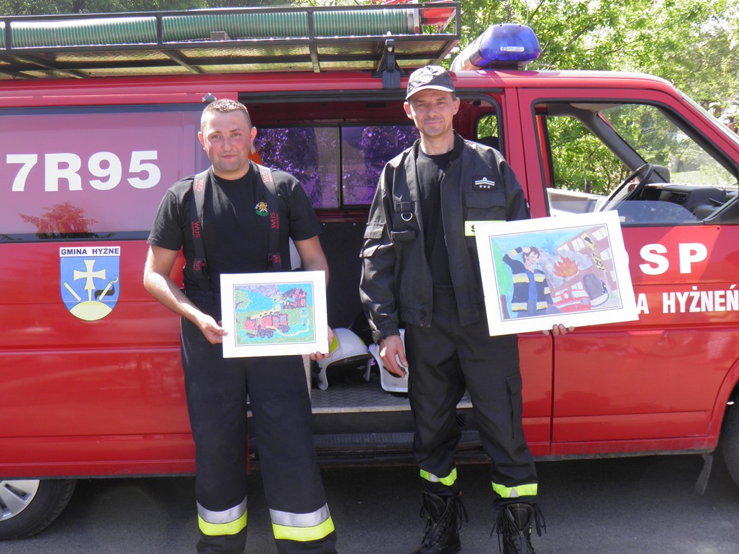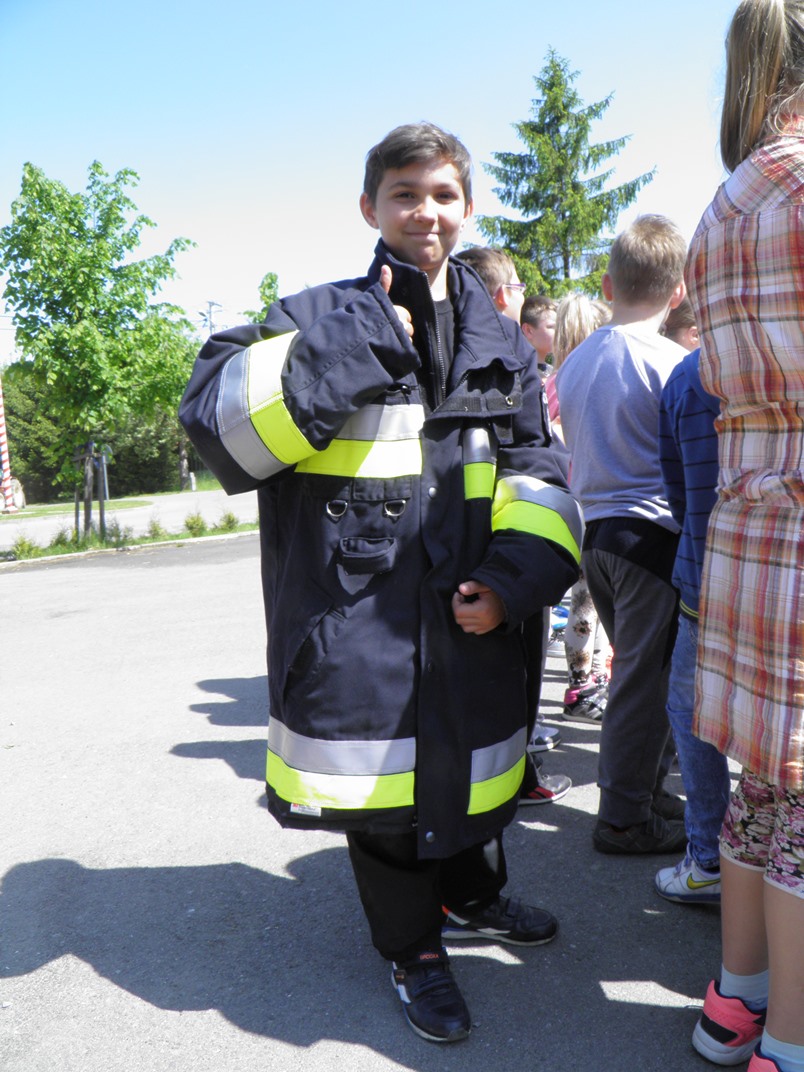 24 maja 2016 roku odbyło się spotkanie z przedstawicielami Ochotniczej Straży Pożarnej w Wólce Hyżneńskiej. Uczniowie mieli okazję uczestniczyć w specjalnej lekcji dotyczącej bezpieczeństwa oraz postępowania w przypadkach sytuacji zagrażających życiu w tym zagrożenia pożarem. Po wyjściu ze szkoły i przybyciu na plac parkingowy obok Domu Strażaka w Wólce Hyżneńskiej uczniów i nauczycieli przywitał p. Jan Krowiak i p. Sławomir Marszałek. Na początku lekcji przedstawiono uczniom, czym jest ochotnicza straż pożarna oraz zarys historyczny powstania jednostki pożarniczej w naszej miejscowości. Uczniowie z dużym zainteresowaniem wsłuchiwali się w historię opowiadaną przez strażaków. Najbardziej interesujące jednak okazało się wyposażenie strażaków, sposób użycia i wykorzystania poszczególnych przedmiotów. Strażacy zaprezentowali pełny stój wraz z butlą i maską tlenową wykorzystywaną w akcjach gaśniczych. Sprawdzili wiedzę uczniów na temat numerów alarmowych oraz sposobu postępowania w trakcie powstania pożaru. Szczególnie interesujące okazały się prezentowane tłumice służące do gaszenia palących się traw na łąkach, krótkofalówki wykorzystywane przy komunikacji. Radość wszystkim sprawiła możliwość potrzymania węży gaśniczych, przymierzenia kasków i kurtek strażacki czy też możliwość obsługi syreny strażackiej.