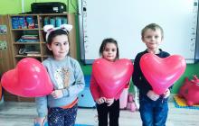 „W dniu świętego Walentego nic nie może dziać się złego, nikt nie może się dziś złościć, bo dziś nadszedł dzień miłości!” W poniedziałek 14 lutego obchodziliśmy w naszym przedszkolu "Walentynki". Przedszkolaki zapoznały się z tradycją Walentynek, rozmawiały o tym jak można okazywać szczęście, przyjaźń i miłość bliskim osobom nie tylko od święta. Wspólnie przygotowali czekoladowo – walentynkowe babeczki i otrzymali balonowe serca, które powędrowały z nimi do domów.