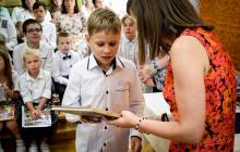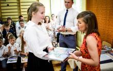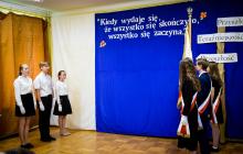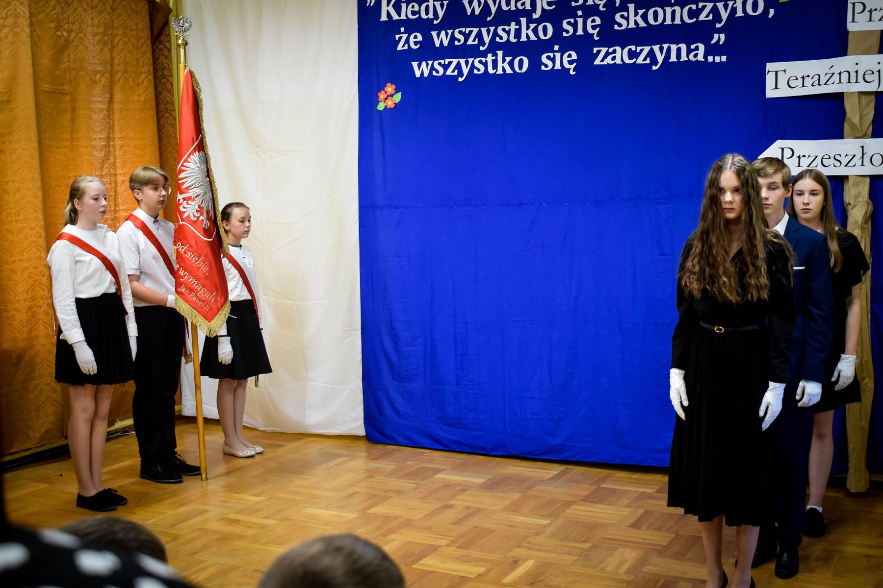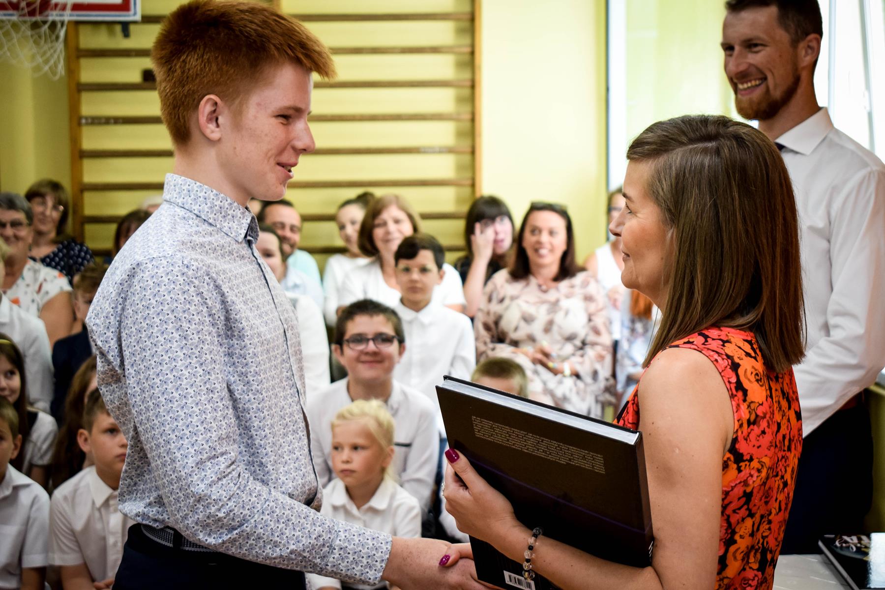 Podsumowanie roku szkolnego rozpoczęto od mszy świętej w której uczestniczył poczet sztandarowy. Po nabożeństwie wszyscy zebrali się w szkole, gdzie inaugurację roku szkolnego zainicjowano ceremoniałem przekazania pocztu sztandarowego młodszym uczniom. Następnie głos zabrała Pani Dyrektor – Agnieszka Rożek, która wręczyła nagrody książkowe uczniom za osiągnięcie wysokich wyników w nauce i wzorowe zachowania.