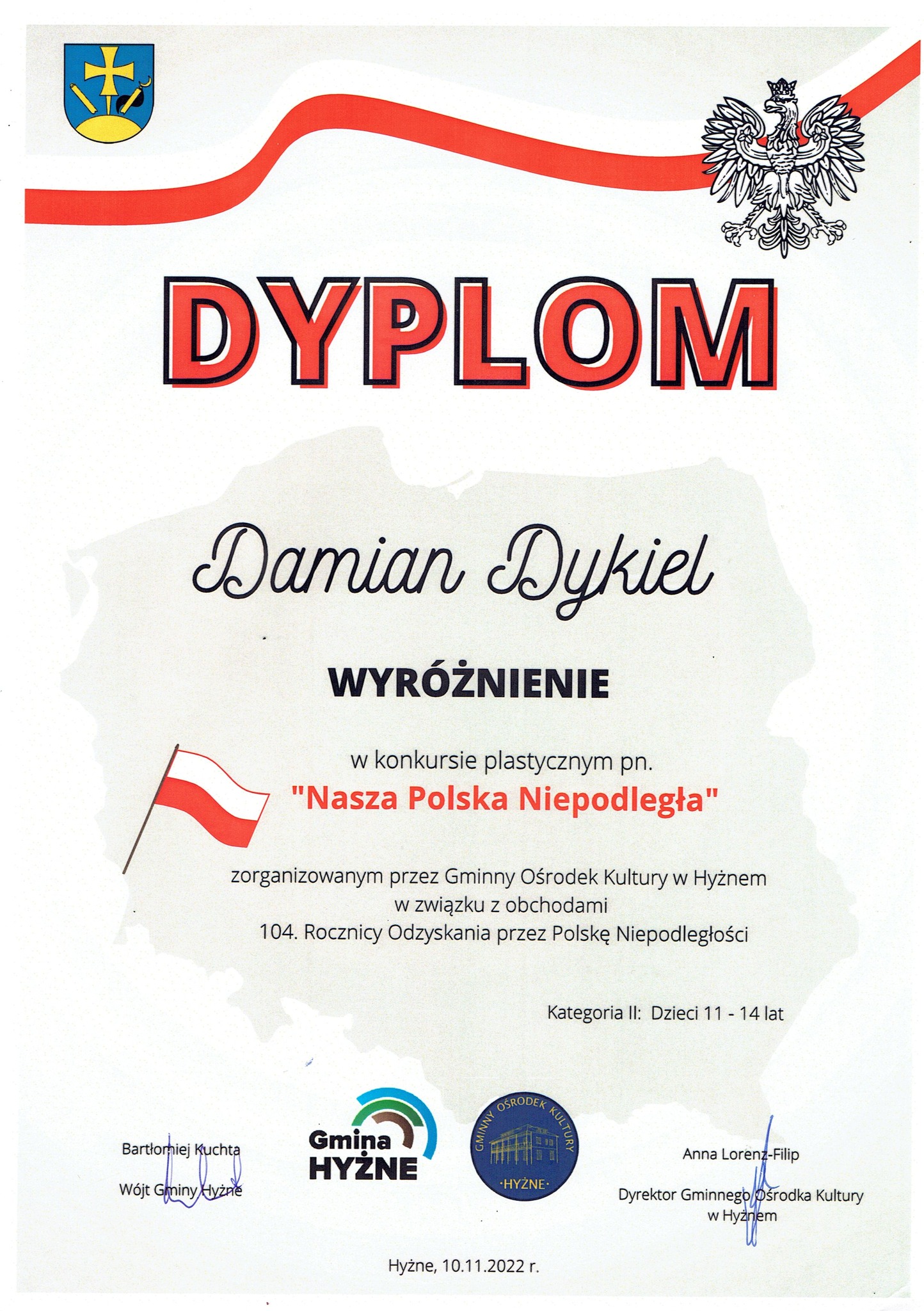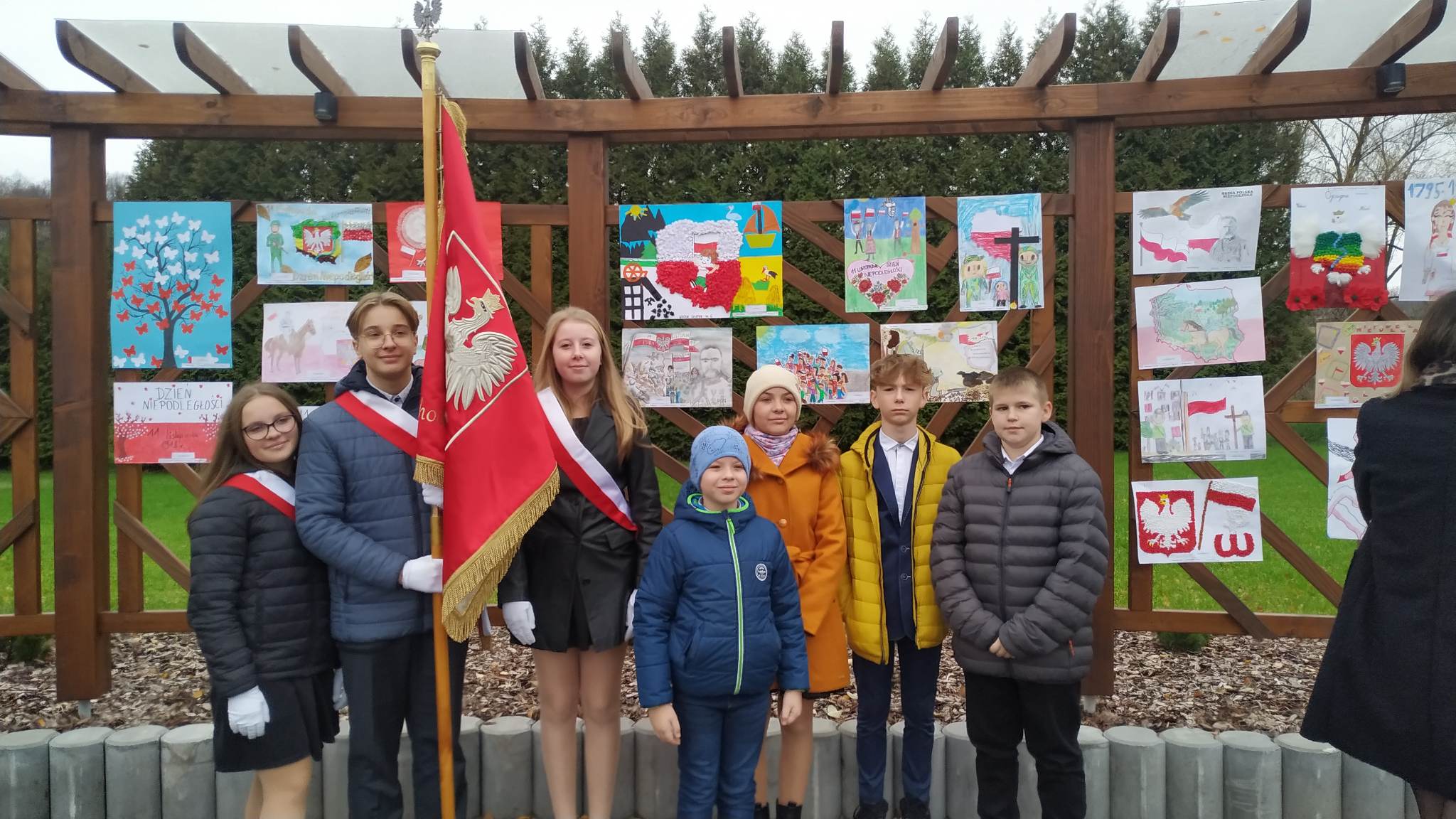10 listopada, podczas uroczystego odśpiewania hymnu narodowego na skwerze gen. W. Sikorskiego, odbyło się także wręczenie nagród i dyplomów dla biorących udział w Gminnym konkursie plastycznym „Nasza Polska Niepodległa”. Wśród nagrodzonych znaleźli się także nasi uczniowie. Serdecznie gratulujemy.