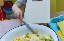 Nawiązując do omawianej tematyki, dotyczącej zdrowego odżywiania oraz wykonując jedno z zadań z projektu „zdrowo i sportowo” przedszkolaki na zajęciach własnoręcznie przygotowały sałatkę owocową. Robienie sałatki było wielką frajdą i zabawą. Po wcześniejszym umyciu owoców dzieci zabrały się do pracy. Dobrze to widać na załączonych zdjęciach, a samodzielnie zrobiona sałatka wszystkim smakowała wyśmienicie.