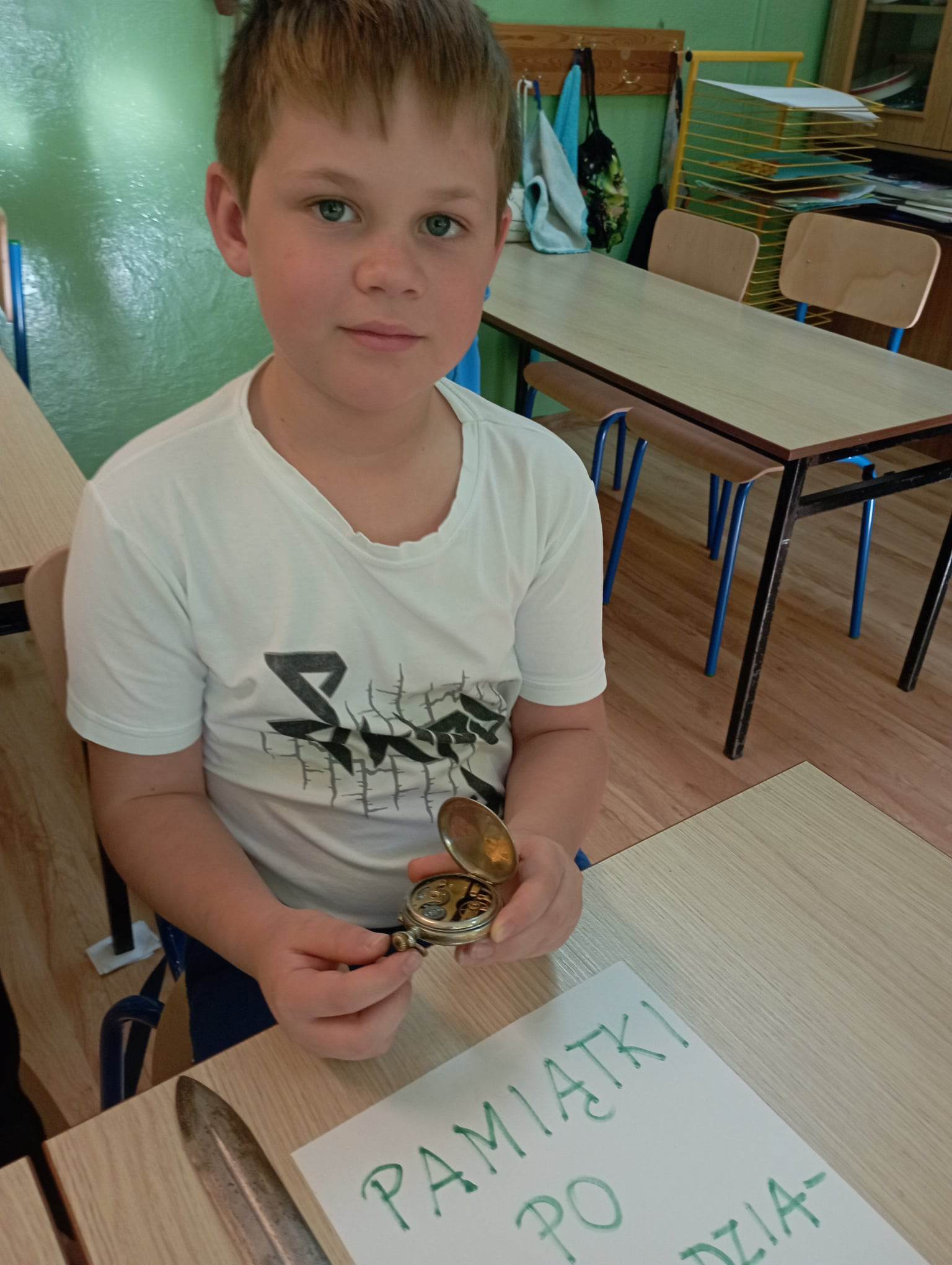 21 listopada b.r. uczniowie klasy II- III kolejny raz wzięli udział w akcji „Szkoła pamięta”. Tym razem zorganizowali wystawkę przedmiotów swoich bliskich zmarłych, aby upamiętnić ich życie wśród nas, ich dobre czyny dla naszej społeczności. Każdy uczeń przedstawiał po kolei pamiątki po swej prababci lub prapradziadku. Wszyscy z wielkim zainteresowaniem słuchali opowieści kolegów. Nawet niektórym zakręciła się łezka w oku… Uczniowie zrozumieli, że każdy człowiek to cząstka historii.